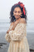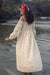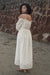 The zoe dress is made from our hakoba embroidered fabrication. It has a tie up detailing at the shoulder with dropped sleeves and fagotting detailing under the bust.