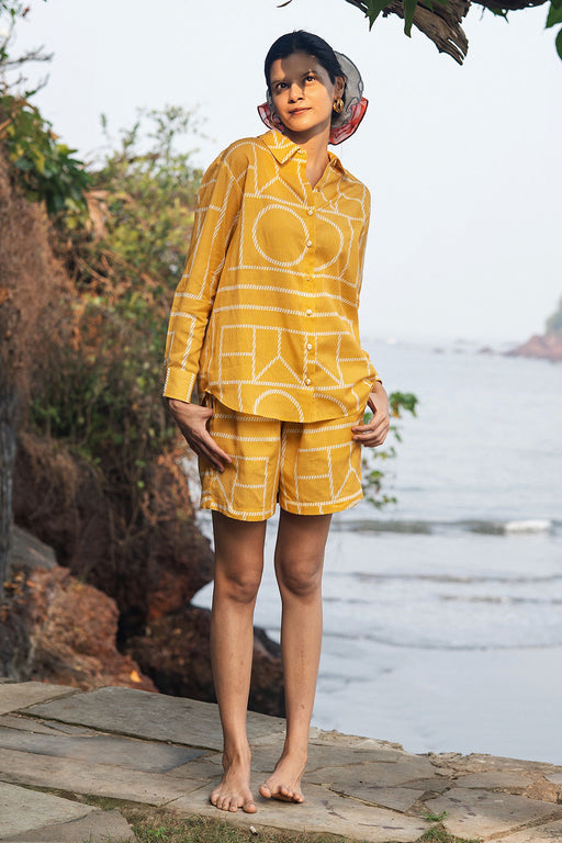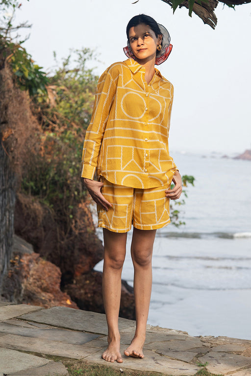 View full detailsDiana set is made from our cotton linen fabrication in geometric print. It has a relaxed fit shirt paired with shorts.Material: Linen cottonColour:...