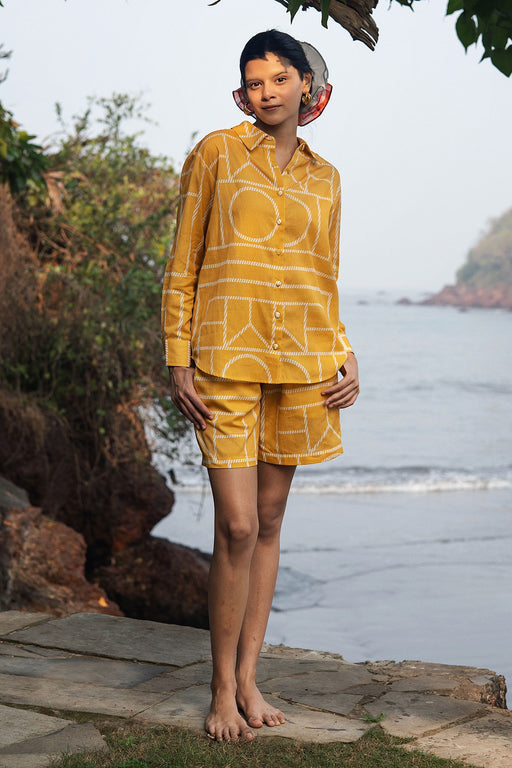 View full detailsDiana shirt is a relaxed fit button down shirt made from linen cotton fabrication in geometric print.Material: Linen cottonColour: Mustard & cr...