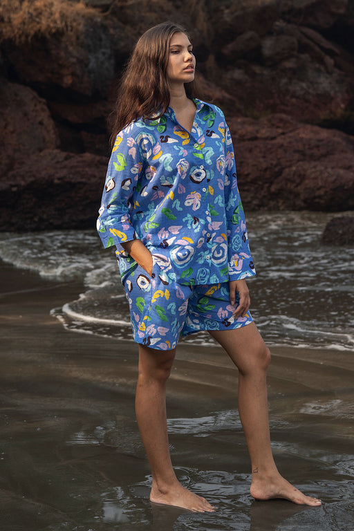 View full detailsDiana set is made from our cotton chequard fabric made from hand painted print. It has a relaxed fit shirt and shorts for a beach vacation.Material...