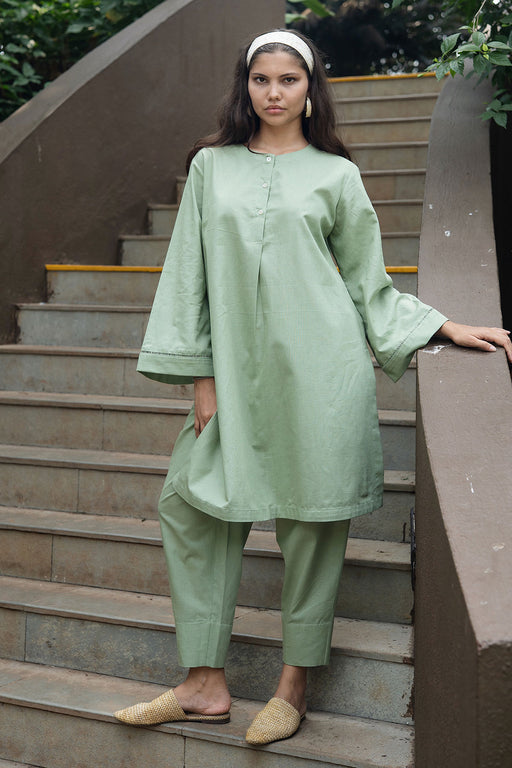 View full detailsThe Iris kurta set is made from our yarn dyed linen cotton fabrication . The tunic Is anti fit pheran style kurta with pakiza inspired pants.Materi...