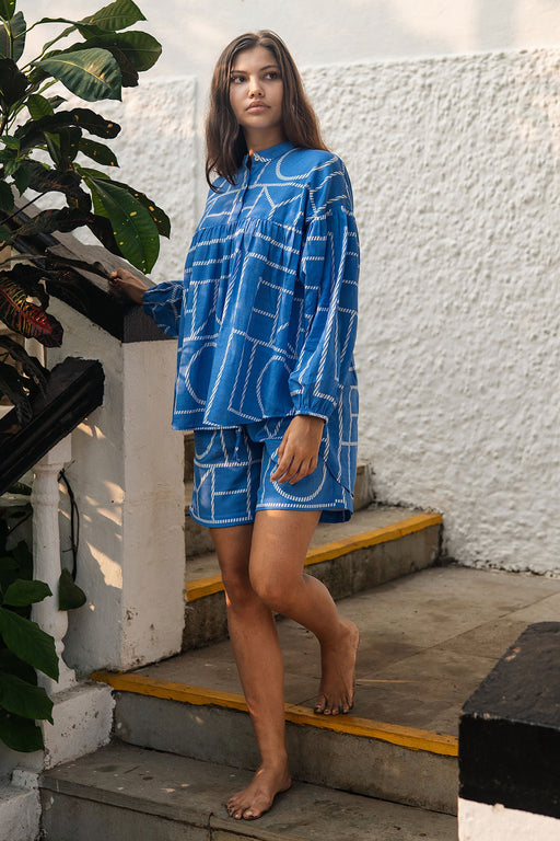 View full detailsLolo set is made from our cotton linen fabrication in geometric print. It has a relaxed fit gathered top paired with shorts.Material: Linen cottonC...