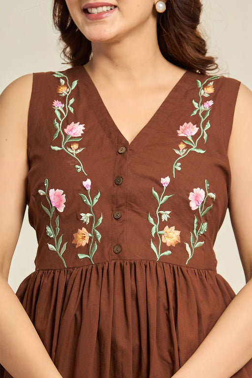 View full detailsEffortlessly elegant and breathable, this Chocolate Brown Floral Embroidered Cotton Co-ord Set is a must-have for your everyday ethnic wardrobe. Cr...