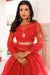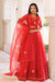 Discover the epitome of elegance with our exquisite red organza lehenga and choli set, complemented by a matching dupatta. Crafted meticulously, the choli boasts a chic round neckline and graceful half sleeves embellished with intricate mukaish work. This ensemble exudes timeless charm, ideal for celebrating festive moments, soirŽes, and the grandeur of wedding festivities. Radiating in vibrant red hues, it captivates attention effortlessly, making it a must-have for the season's revelries. Elevate your style quotient with this stunning ensemble, designed to leave a lasting impression.