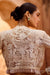 An ivory Lehenga adorned with linear floral embroidery cascading elegantly along the skirt. Paired impeccably with a heavily embroidered bustier, the ensemble is further elevated by a fully embellished short jacket, epitomizing opulent charm and grace.