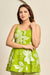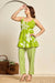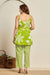 Turn heads this season with our Lime Green Floral Cotton Co-ord Set, the perfect fusion of comfort and eye-catching style. Crafted from soft, breathable cotton, the set features a strappy sleeveless top with bold white floral prints, accented with statement buttons at the front. The look is completed with matching lime green striped pants for a trendy contrast.
