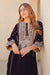 This long A-line ensemble is crafted from luxurious pure silk velvet, paired elegantly with a matching salwar. The outfit features a chic zero-neck with a placket and three-quarter bell sleeves, creating a graceful yet modern silhouette. Adorned with exquisite kirandori embroidery and sparkling sitaara, it adds an opulent touch of craftsmanship. The entire look is completed with delicate pure tissue fabric and intricate kinari, offering a refined and sophisticated finish for any special occasion.