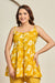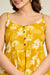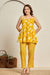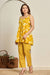 Brighten your wardrobe with this mustard sleeveless floral top paired with printed pants. Ideal for brunches, holidays, and relaxed festive moments.