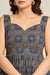 Twirl in style with this navy blue sleeveless printed fit and flare dress. Crafted in breathable cotton for timeless charm and everyday elegance.