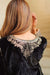 This ensemble is crafted from luxurious pure silk velvet, exuding timeless elegance. Adorned with intricate kirandori embroidery and shimmering sitaara, it radiates traditional charm. The design features a modern zero-neck with a slit, paired with three-quarter bell sleeves for a touch of drama. The voluminous kali is delicately finished with kinari, while the ensemble is complemented by a classic Dogri salwar. The entire outfit is beautifully detailed with pure tissue fabric and kinari, creating a look that's both regal and refined.