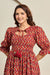 Turn heads in this elegant red midi dress featuring a charming paisley print, puff sleeves, and a flattering gathered waist. Made from breathable cotton, it boasts a playful keyhole neckline with tassel tie-up and a tiered hem for graceful movement. Perfect for brunches, day events, or relaxed festive wear.