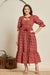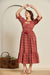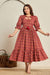 Red Paisley Cotton Midi Dress with Puff Sleeves