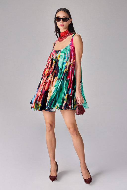 View full detailsFloral print scoop neck, flared mini dress