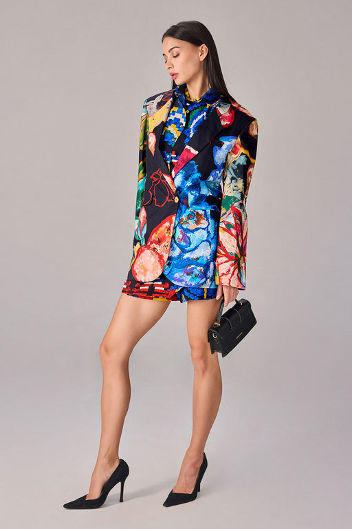 Abstract floral print blazer with patch pocket detailing