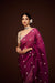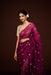 Product description: The boysenberry saree with ivory cream blouse features intricate embroidery that enhances its beauty. This embroidery includes delicate patterns such as polka dots.