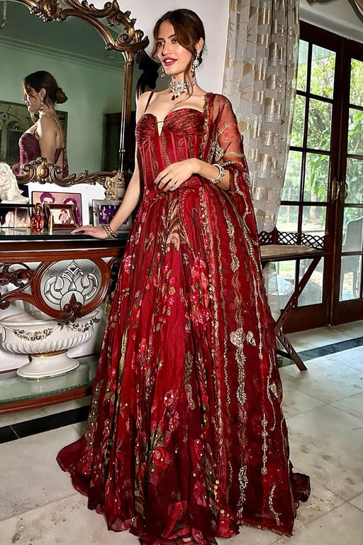 View full detailsHeavily embroidered lehenga with matching blouse and dupatta FABRIC: Organza COLOR: Red NO. OF COMPONENTS: 3 DELIVERY TIME: 4 Weeks WASH CARE: Dry ...