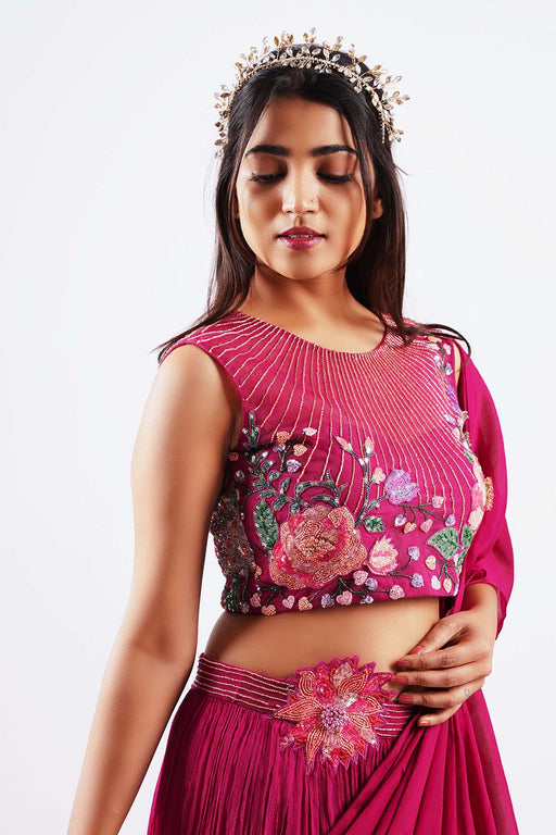 Azelie-Nakshatra Pink Hand Embroidered Pre Draped Saree