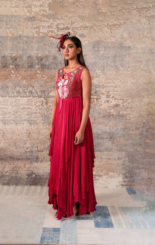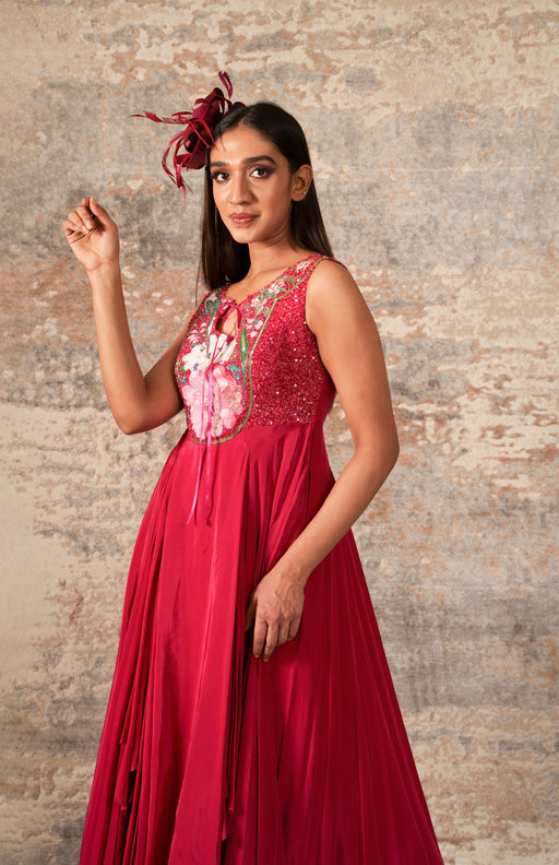 La Fleur - Hand Embroidered Magenta Pink Dress