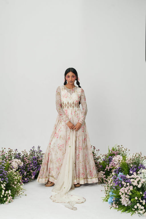 The Floret Daisy White Embroidery Anarkali is a breathtaking ensemble that epitomizes grace and beauty. With its intricate daisy-inspired embroider...