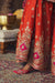 An elegant ensemble featuring a pure Banarasi short kurta with a zero neckline and front slit, zero back, and elbow sleeves. It is paired with a sharara showcasing a broad border and embroidered bootis, along with a beautifully embroidered silk organza dupatta. Adorned with intricate Kashmiri Tilla and Gota Patti embroidery, highlighted with pearls and sequins, the outfit is finished with delicate gota detailing for a regal finish.