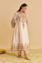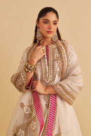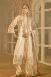 Zoya - Dabka Zardozi Embroidered Rich Banarasi Kalidaar Daisy Ivory Long Chauga Set