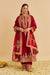 Zoya - Dabka Zardozi Embroidered Rich Banarasi Kalidaar Deep Red Long Chauga Set