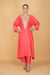 Featuring a high-low coral kaftaan kurta in cotton silk, embellished with intricate hand-embroidered work on the neckline, paired with coordinating pants in cotton silk.