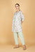 Green Embroidered Floral Print Short Kurta with Solid Pants