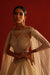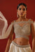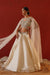 Kapda Dori's stunning ivory dupion silk lehenga, beautifully adorned with intricate stones and cutdana work . The ivory color adds a touch of glamour and sophistication to your look, while the soft fabric ensures you feel comfortable all day or night long. It is styled with a ivory dupion silk blouse hand embroidered with crystals, stones and sequins. Pair it with complimenting mustard net embroidered dupatta finished with beautiful fringe lace.