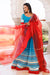 Discover a stunning sky blue lehenga and choli ensemble crafted from premium cotton, complemented by an organza dupatta. The choli boasts a charming sweetheart neckline and delicate half sleeves, enhanced with exquisite gota work details. Accentuating this ensemble is a vivid red dupatta, creating a striking contrast and infusing the outfit with a vibrant allure. Perfect for festive celebrations and special occasions, this attire exudes sophistication and grace, ensuring a memorable and fashionable statement wherever you go. Elevate your style with this chic ensemble that combines traditional charm with contemporary elegance.