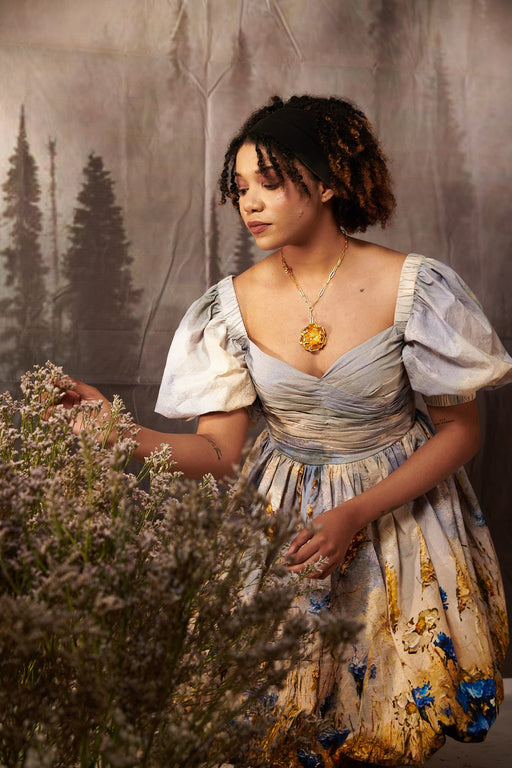 View full detailsSlip into a vision of elegance and grace with our enchanting calf-length dress. Featuring a captivating nature-inspired print that adorns the flo...