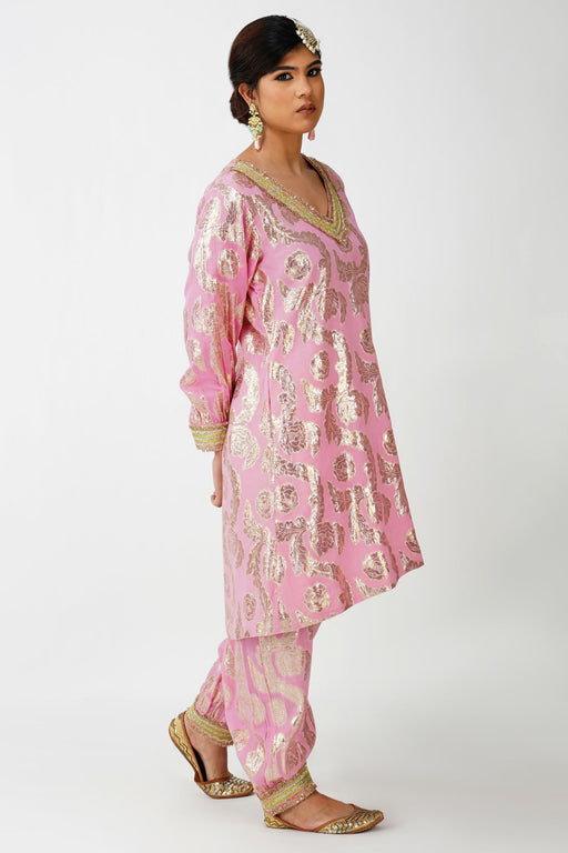 Printed kurta pant set FABRIC: Moss Crepe, Glace Cotton COLOR: Ivory NO. OF COMPONENTS: 2 DELIVERY TIME: 4 Weeks WASH CARE: Dry clean