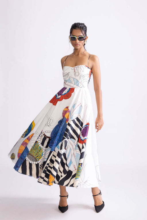 Tribal Placement Print, Sweetheart Neckline, Summer Flared Frock With Noodle Straps Gond Marilyn Dress