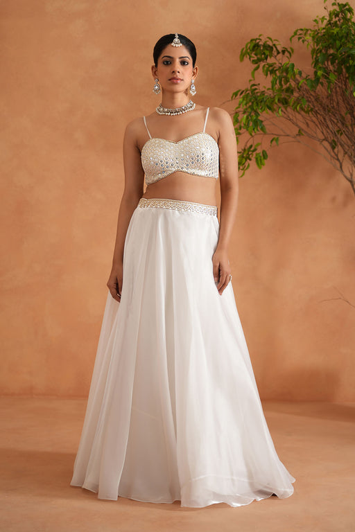 View full detailsDeepika Chadha's stunning georgette embroidery fabric bustier and flowy ivory glass organza fabric lehenga which adds a touch of sophistication to ...