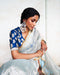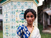 Description: This is a midnight blue raw silk blouse with a scalloped neckline enhanced it with pita and cutdana embroidery work.