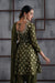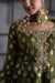Deepika Chadha's stunning Olive green banarsi brocade peplum beautifully adorned intricate sequins, cutdana, beads, dabka, stones and zari embroidery on neckline. It is paired with mukaish georgette fabric tulip salwar. The embroidered choker dupatta keeps you light and comfortable all day long and is perfect for wedding and festive season.