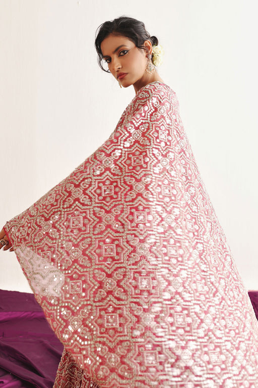 Command the spotlight in our PINK Corset Saree — a sculpted silhouette that marries structure with fluidity. Designed in luxurious fabric with hand...