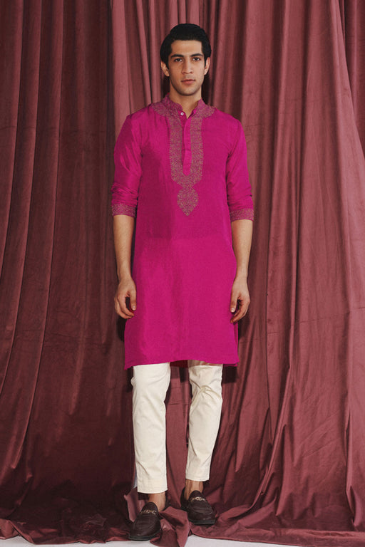 Fuschia Kurta With Marodiwork Color: Fuschia Fit: Comfortable Fit Fabric: The garment is made in Silk, with Marodiwork embroidery designed, embroi...