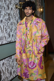 Embellished Kurta Set Featuring Signature Mm Buttons Paired with Bomber Jacket