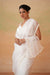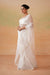Deepika Chadha's stunning Off white velvet blouse beautifully adorned with pearls design at back. The flowy Organza stitched saree with shandlace atttached peticoat , beautifully adorned with Pearl border all around which gives you a sophisticated look and is perfect for wedding and festive season.