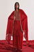 Red SF Bandhani with Golden Silver Marodiwork Tissue Finishes and Ankle Length Flared Palazzos with Marodiwork in Silk with Red Mukaish Dupatta with Finishing
