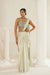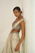 Kapda Dori's stunning silver grey ready to wear textured sandwash saree, beautifully adorned with intricate hand embroidery of sequins, stones on waist belt. The silver grey color adds a touch of glamour and sophistication to your look, while the soft sandwash fabric ensures you feel comfortable all day or night long. It is styled with a silver grey blouse fully embroidered with stones,cutdana, beads and sequins.