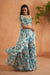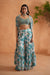 Deepika Chadha's stunning teal blue mirror and zari blouse and white teal georgette gharara with beautiful peacock and floral prints which gives a sophisticated look. It is paired add a beautiful look to it and keeps you light and comfortable all day long and is perfect for wedding and festive season.