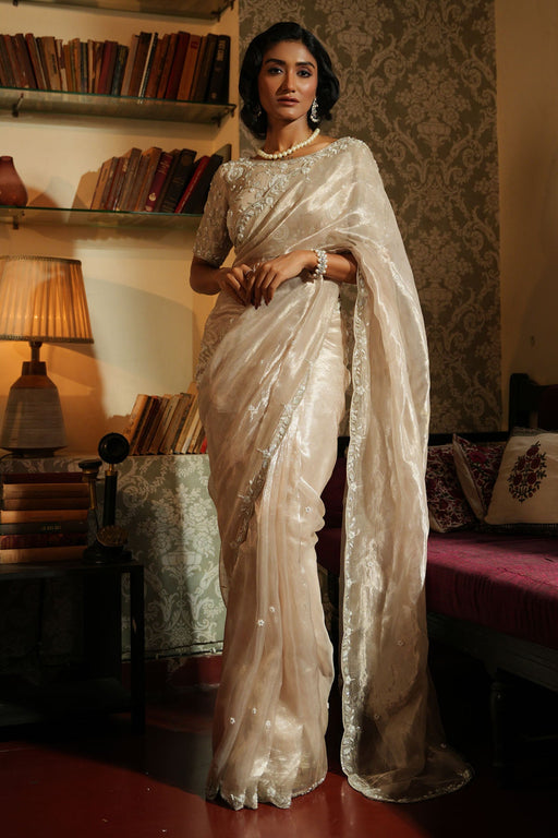 View full detailsAwaken Your Inner Goddess With The Breathtaking Allure Of 'Sunrise' – An Exquisite Masterpiece That Redefines Opulence. This Ombre Champagne Saree ...