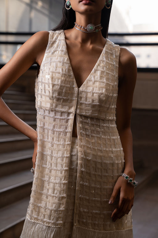 SUMAIRA - DAISY IVORY LONG KURTA WITH PALAZZO AND DUPATTA