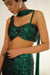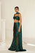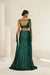 Kapda Dori's stunning bottle green skirt set, beautifully adorned with all over sequins embroidery fabric. The skirt features a full-length flared look with high thigh slit. The Bottle green color adds a touch of glamour and sophistication to your look, while the fabric texture ensures you feel comfortable all day or night long. It is styled with a Bottle green sequins fabric choli. It is paired with geogratte chokar dupatta with tessels details.
