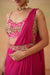 Deepika Chadha's stunning Fuchsia dupion fabric is blouse beautifully adorned with intricate sequins, cutdana, thread, embroidery. The flowy Georgette stitched saree with detachable embroidered belt is perfect for wedding and festive season.