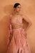Deepika Chadha's stunning pink cosmos fabric blouse beautifully adorned with gold dabka, sequins, cutdana embroidery. The flowy pink and gold embroidered cosmos fabric lehenga with beautiful borders at bottom adds a touch of sophistication to your look. it is paired with chinnon fabric embroidered dupatta which keeps you comfortable all day long and is perfect for wedding and festive season.
