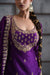 Deepika Chadha's stunning Purple and gold silk fabric kurti, beautifully adorned with intricate pearls , stone and sequins embroidery. The flowy purple banarsi silk sharara adds a touch of tradition and sophistication to your look, while the embroidered chinnon Dupatta is perfect for wedding and festive season.