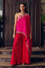 TASSEL DETAILED, ONE SHOULDER FLORAL HAND EMBROIDERED SILK DRAPE STYLED WITH FLARE PANTS